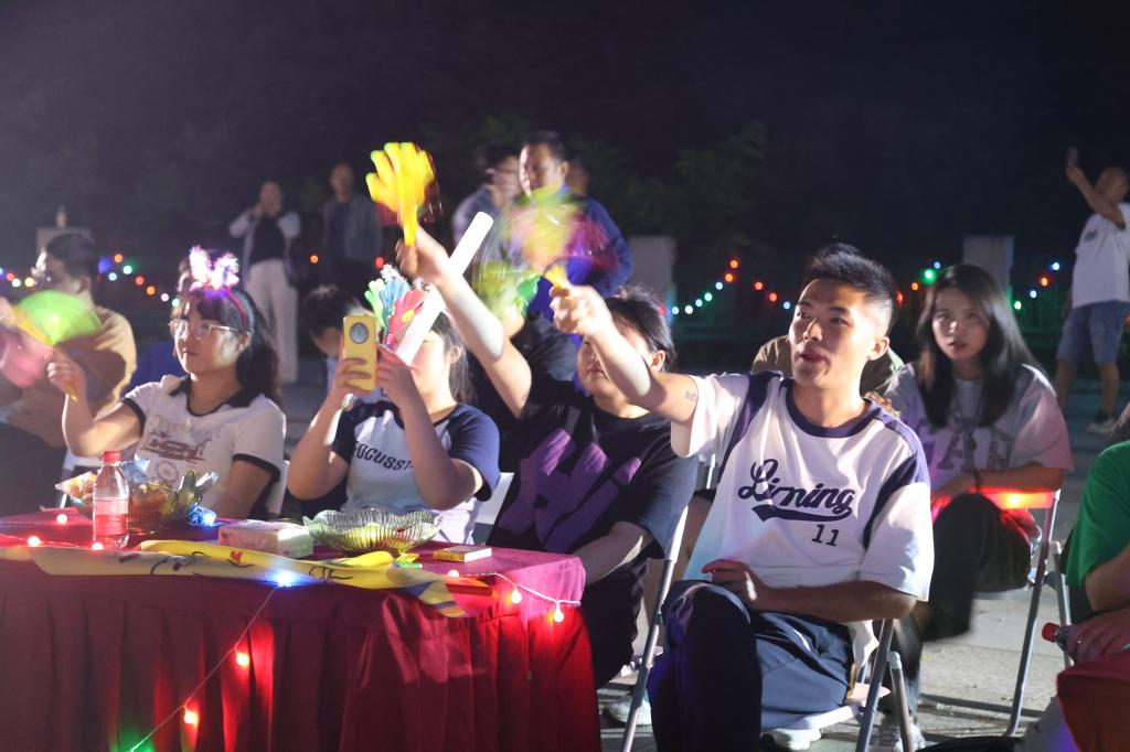 傍晚时分,青年职工齐聚采矿场观礼台,随着夜幕降临,第一簇火焰燃起,篝火晚会正式拉开序幕。火光如精灵般在夜空中舞动,青年们围着熊熊燃烧的篝火,或站或坐,脸上洋溢着难以掩饰的兴奋与期待。伴随着音乐响起,节奏欢快而热烈,青年们纷纷载歌载舞、展示才艺,既有激昂的rap,也有温柔的民谣,歌声回荡,旋律悠扬,每一曲都触动着在场每一个人的心弦。一支民族舞《兰亭序》,将传统与现代完美融合,展现了多元文化的魅力,引得掌声与欢呼声此起彼伏。现场大家用手机手电筒的星星点点绘制出“七夕”二字,将整场氛围推向了高潮。在接下来的“击鼓传花”、“听音乐猜歌名”等环节中大家更是欢声不断、跃跃欲试,晚会在《奢香夫人》的大合唱声中落下帷幕,令人久久回味……