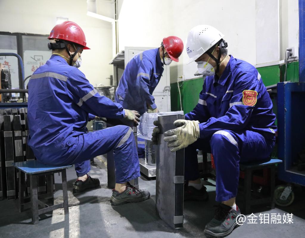 从手动装粉到半自动化装粉,再到全自动化装粉,生产效率实现了质的飞跃。最初,100kg以上的大规格钼电极,单班人均产量只有250kg,半自动化后达到700kg,全自动化后达到1200kg。这正是“技术+经验”双轮驱动模式带来的可喜变化,惠红利看在眼里,喜在心上。