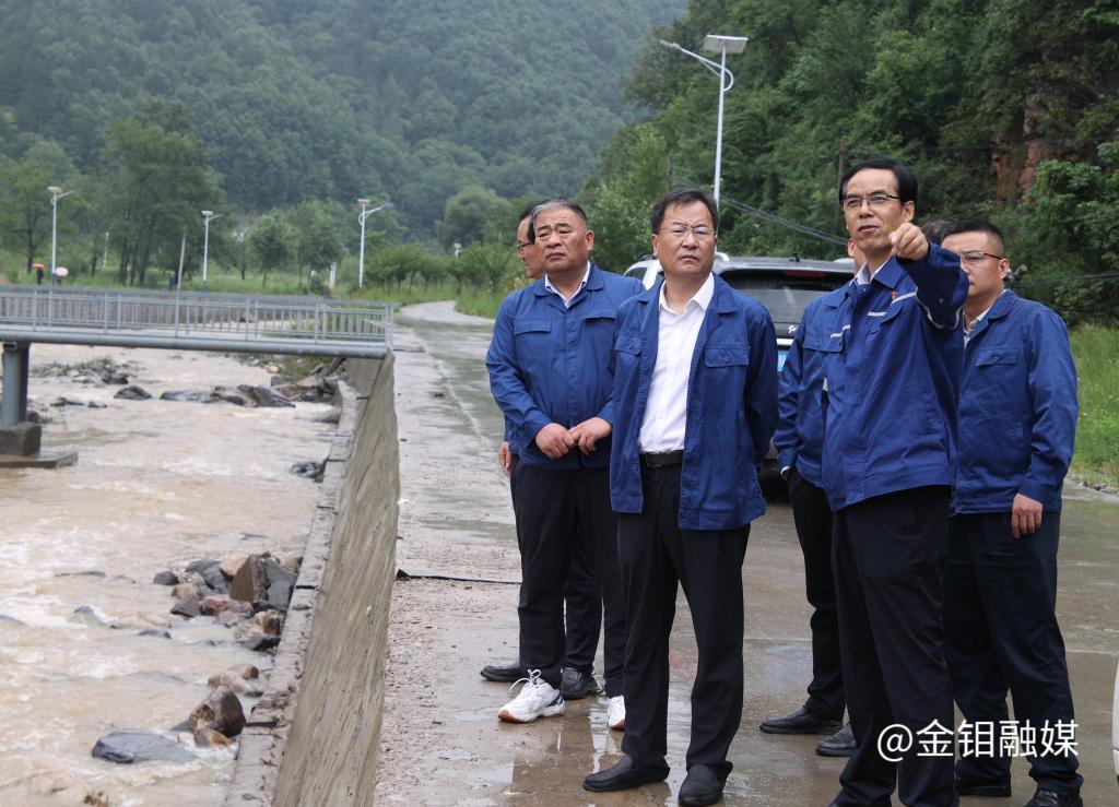 暴雨过后,金堆矿区部分路面、桥面护栏、河道设施受损,严平一行实地查看抢修工程进展、河势水情,强调要紧盯薄弱部位、险工险段,确保河道排水畅通和生产设施安全。