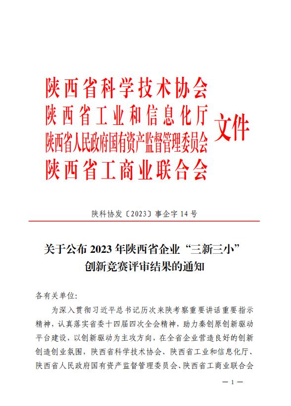 ty8天游平台登录股份在陕西省企业“三新三小”创新竞赛中取得优异成绩