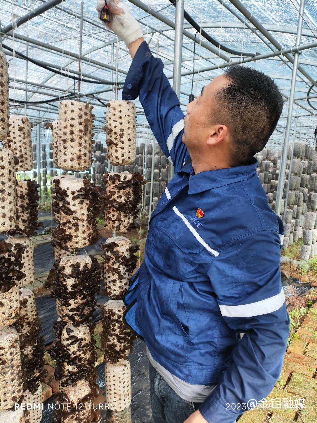 采区党支部党员黄加加义务为木耳产业大棚更换损坏的喷淋管道、喷淋头