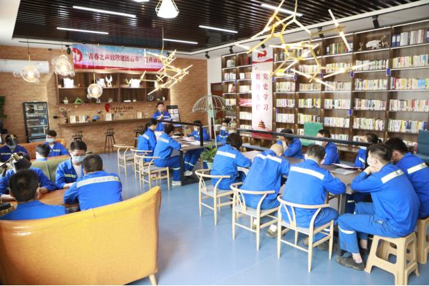 ty8天游平台登录汝阳团委负责人给大家讲授团课--《百年团史》,动员广大团员青年继往开来、奋发有为,以更加饱满的热情和朝气蓬勃的精神状态投身公司生产经营和改革发展工作中。